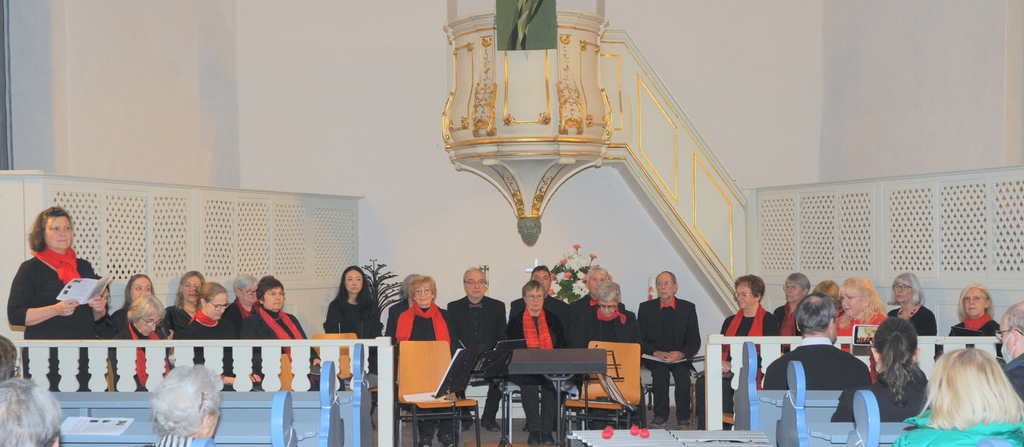 Mit viel Charme und Humor führte unsere ehemalige Rumpenheimer Pfarrerin Kirsten Lippek durch das Festprogramm. Unter der Leitung von Tobias Prautsch trugen wir aus unserem breiten Repertoire 17 Lieder u.a. Neue geistliche Musik, wie das Kyrie aus der "Missa 4 You(th)" (T. Baumann), "Cantate Domino" (K. Jenkins), Gospels wie "This Little Light Of Mine" und das populäre hebräische "Hine Mah Tow" (W. Buchenberg) vor.