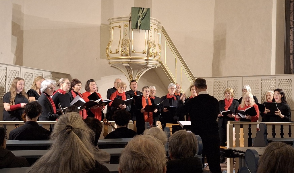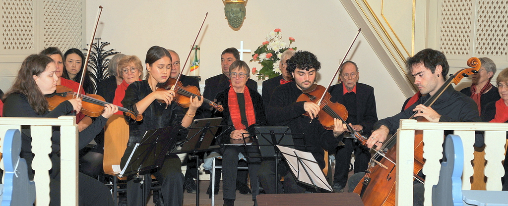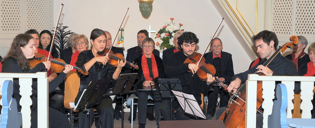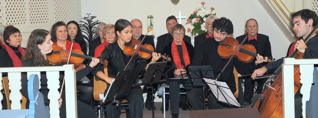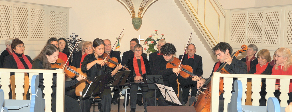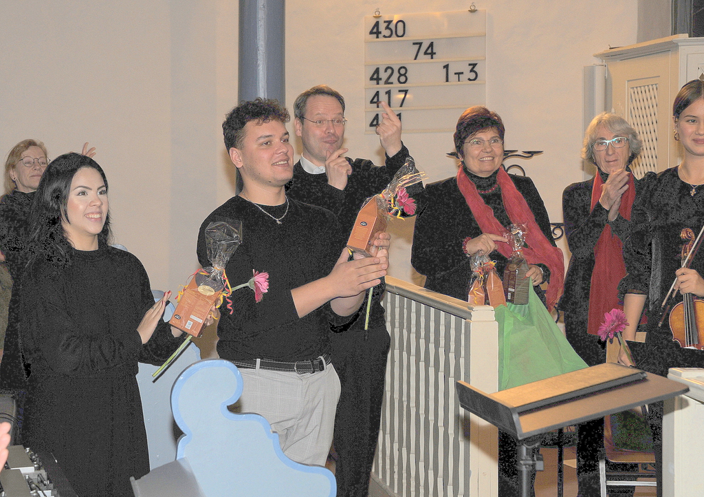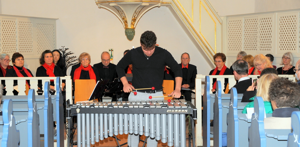 Hervorzuheben ist die Sopranistin Caroline Arruda, die das “Ave verum” und “Et incarnatus est” von Mozart interpretierte und - zusammen mit der Kantorei - das Lied “Abend wird es wieder” sang. Neben “Nimrod aus Enigma Variations” und weiteren Werken beeindruckte das Streichquartett “Colora Quartet” mit seiner Version von Mozarts populären Werk “Eine kleine Nachtmusik”. Eher selten bekommt man in der klassischen Musik ein Vibraphon zu Gehör, das dann auch noch so sehr beeindruckend gespielt und improvisiert wurde von Patryk Szczechowski. Durch den Abend begleitete wieder Stanislav Okunev am Klavier, der die Kantorei inzwischen sehr gut kennt und zu einem sicheren Begleiter des Gesangs der Kantorei geworden ist.